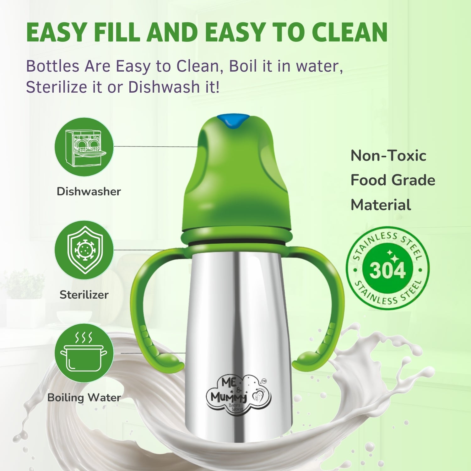 • Spill-proof and storage-friendly - Me & mummy milk feeding bottles for baby are convenient. Its durable stainless-steel construction ensures they will last a long time, while its compact size makes its easy to store.